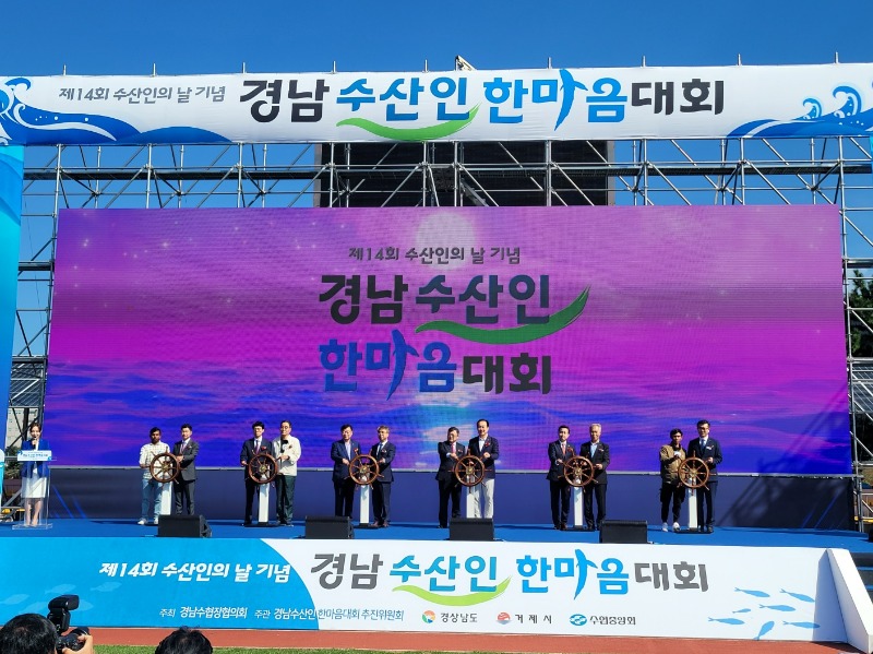 지난 3월 대형 산불 발생으로 연기되어, 이날 열린 제14회 경남수산인 한마음대회는 경남수협장협의회가 주최, 한마음대회 추진위원회가 주관, 경상남도·거제시·수협중앙회가 후원했다. ‘바다에서 희망을, 수산에서 미래를’을 주제로 식전공연, 기념행사, 문화행사 순으로 진행됐다.