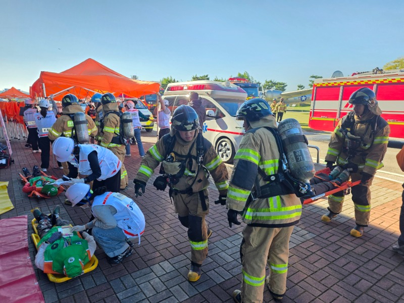 - 사천공항 항공기 불시착 화재 사고에 대응하는 실전 같은 훈련