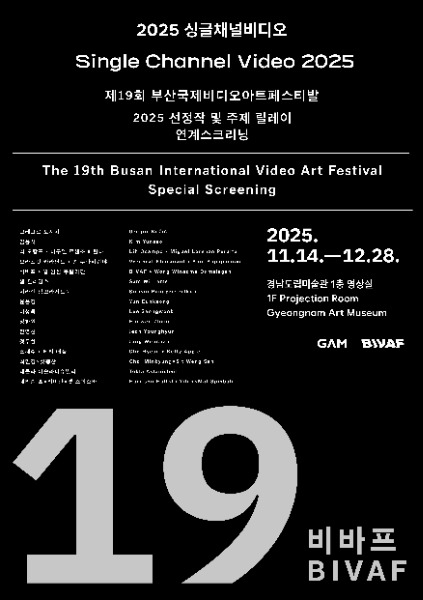 경남도립미술관(관장 박금숙)은 오는 11월 15일부터 12월 28일까지 제19회 부산국제비디오아트페스트발을 통해 선정된 영상 작품 상영회를 운영한다고 밝혔다.