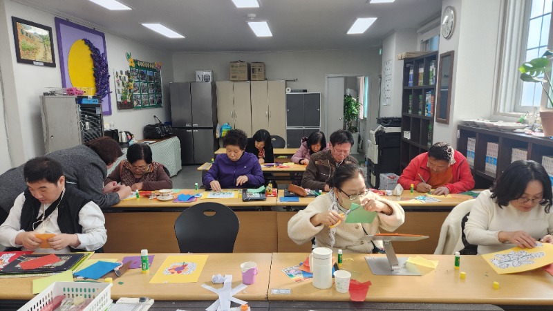 경남조은장애인평생학교 학생들은 1교시 미술심리치료 시간에 꽃을 오려 두꺼운 색색의 종이에 붙힌 후 얇은 한지를 뜯어 장식해보았습니다. 한지로 하나하나 잘게 종이를 뜯어 붙이니 색다른 느낌의 꽃이 탄생하였습니다. 각자 한지로 만든 꽃의 제목을 정해보고 이야기 나누어보았습니다. 한지 꽃을 꾸미면서 집중해보며 스트레스 받고 안좋은 생각을 떨쳐버리며 즐겁게 미술심리치료 시간을 즐겨보았습니다.