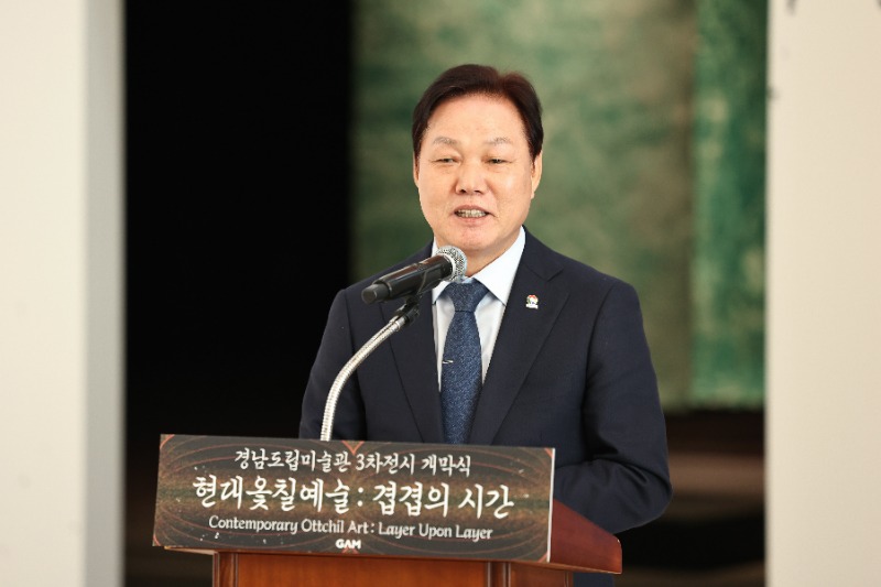 경상남도(도지사 박완수)는 13일 경남도립미술관(관장 박금숙)에서 조계종 종정 성파스님을 대표작가로 초청한 특별기획전 《현대옻칠예술: 겹겹의 시간》 개막식을 개최했다. 이번 전시는 옻칠의 역사성과 예술적 전통을 바탕으로 현대미술로 확장된 옻칠예술의 흐름을 조망한다.