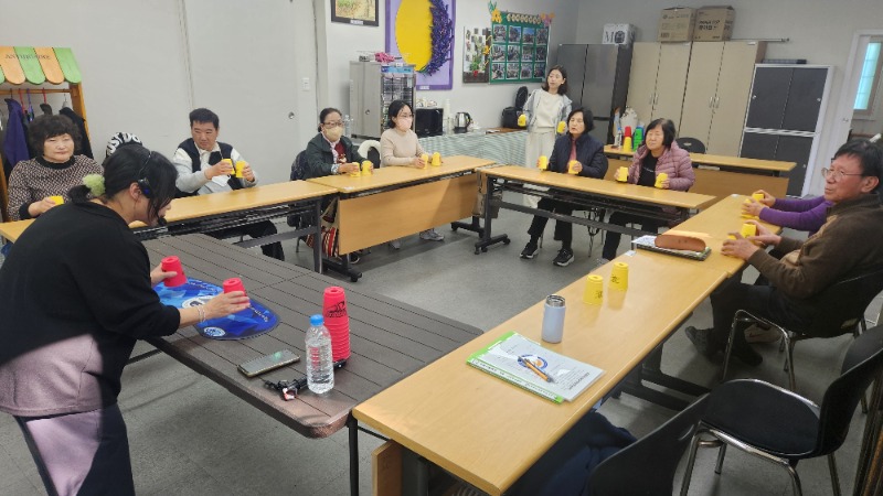 경남조은장애인평생학교 학생들은 1교시 영어 수업 후 2교시 컵타/스포츠스태킹 시간에 흥부놀부에 맞춰 손스팟을 해보고 독도는 우리땅 노래에 맞춰 컵타를 해봅니다. 3.6.3 스태킹에서 시작하여 6.6 스태킹으로 만든 후 다시 1.10.1 스태킹으로 마무리해보며 싸이클로 해보았는데 연결해서 하다보니 어려운 부분이 있어 자연스럽게 하진 못하지만 열심히 따라와주시는 조은학생들입니다. 컵타를 하다보면 언제 시간이 흘러갔는지 모를정도로 시간이 너무나도 빨리 지나가는것같습니다. 열심히 하다보니 금새 끝나버린 컵타시간. 모두들 아쉬워하며 다음시간에 또 한번 더 연습해보기로 합니다. 모두들 수고하셨습니다.