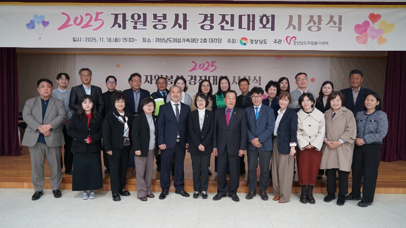 경상남도(도지사 박완수)는 18일 경남여성가족재단 대강당에서 ‘2025 자원봉사 경진대회 시상식’에서 지역사회 자원봉사 활성화에 기여한 29개 팀에 도지사상을 수여했다고 밝혔다.