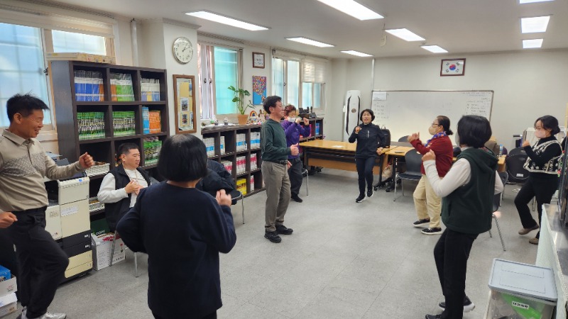 경남조은장애인평생학교 학생들은 1교시 한문 수업 후 2교시 밸런스워킹 시간에 제자리 워킹을 시작으로 하여 다양한 밸런스동작을 취해보았습니다. 그런다음 타바타 두번째 근력운동을 실시하면서 다양한 근력운동을 해봅니다. 첫번째 타바타 근력운동에 비해 두번째가 좀더 강도가 높아진 탓인지 학생분들 이마에 땀이 송골송골 맺힙니다. 그리고 루프밴드를 활용하여 하체강화 운동을 해보았습니다. 루프밴드를 다리에 끼고 좌우앞뒤 왔다갔다 움직여보면서 하체 근력을 키워보는 시간을 가져보았습니다.