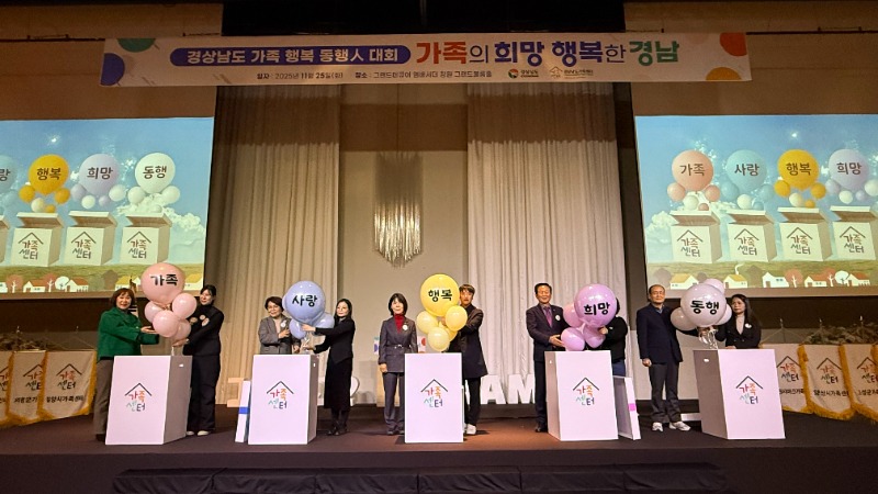 경상남도는 25일 오후 1시 30분 창원 그랜드머큐어 앰배서더 그랜드볼룸홀에서 도내 가족센터 직원들의 노고를 격려하고 화합을 다지는 ‘2025 경상남도 가족행복 동행人 대회’를 개최했다고 밝혔다.