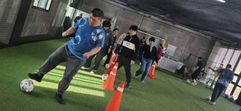 발달장애인들은 풋살장을 누비며 힘차게 달린다.