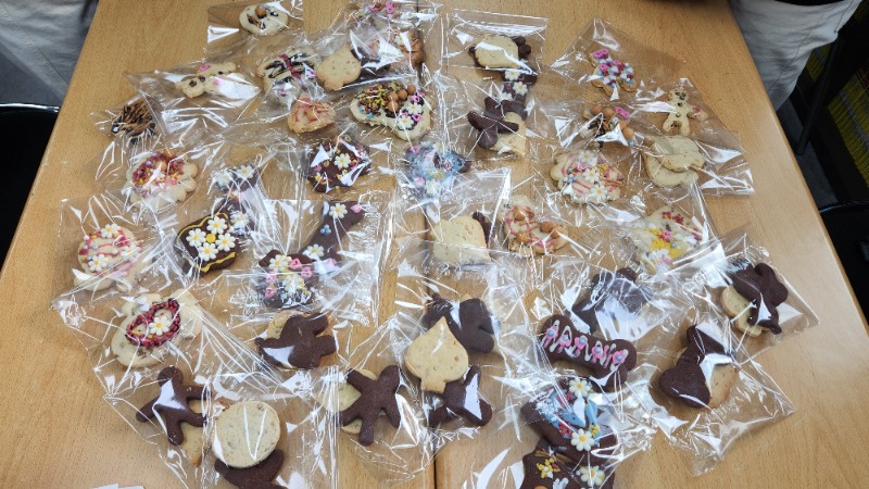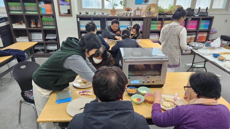 경남조은장애인평생학교 학생들은 1교시 제과제빵 시간에 밀가루와 소금, 설탕, 계란으로 반죽을 하고 그 안에 땅콩, 호두, 초코를 넣어 잘 섞어준 뒤 숙성해주었습니다. 그런다음 밀대로 얇게 펴서 모양틀로 찍어내었더니 맛있는 쿠키가 완성되었습니다. 모두들 재밌게 만들어준 덕에 더 좋은 맛이 나는것 같습니다. 즐거운 제과제빵 시간이었습니다.