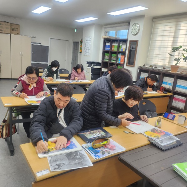 경남조은장애인평생학교 학생들은 1교시 창체 수업 후 2교시 미술스케치 수업에서 명암의 11단계를 이해하고 파프리카 그림에 명암을 넣어보았습니다. 연하게 색칠을 시작하여 점점 진하게 색칠을 해보고 명암의 11단계를 이해하며 어두운 곳과 밝은 곳의 차이를 두며 명암을 넣어보는 시간을 가져보았습니다.