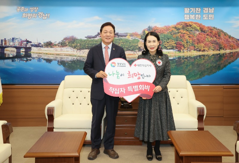 경상남도(도지사 박완수)는 4일 오전 도청 접견실에서 대한적십자사 경남지사(회장 박희순)에 2026년도 적십자 특별회비 500만 원을 전달하며 지역사회 나눔문화 확산에 앞장섰다.