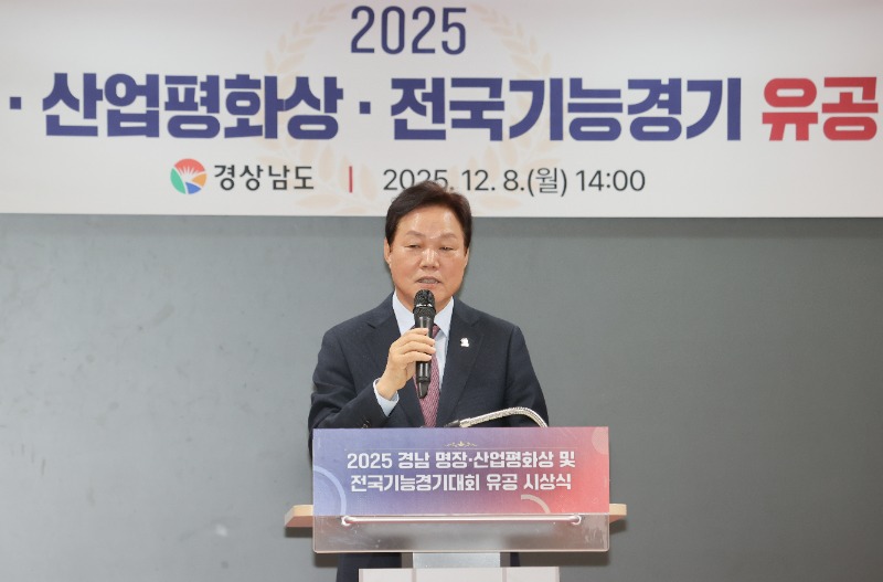 경남도는 8일 오후 도청 도정회의실에서 ‘2025 경남 명장‧산업평화상 및 전국기능경기 유공 시상식’을 개최하고, 올해의 경남 명장과 산업평화상, 전국기능경기대회 유공자에게 명장 증서와 상패 등을 수여했다. 시상식에는 수상자 및 가족 등 50여 명이 참석했다.