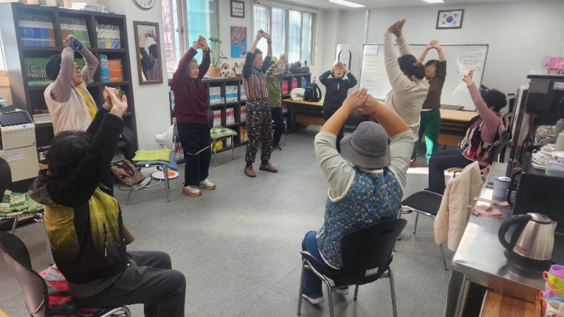 경남조은장애인평생학교 학생들은 1교시 국어 수업 후 2교시 밸런스워킹 시간에 다양한 방식으로 응용하여 걸어보고 어깨, 견갑골, 골반을 자극해보는 시간을 가져보았습니다. 뭉친 근육을 자주 풀어주고 움직여줌으로써 몸이 굳지않고 부드럽게 움직여질수 있도록 자주 스트레칭을 해보기로 하였습니다. 다음으로는 루프밴드를 활용하여 맨몸으로 운동할때보다 좀더 운동효과가 나타날수 있도록 발목에 밴드를 끼고 스쿼트도 해보고 걸어보기도 하며 근력을 키워보는 시간을 가져보았습니다. 오늘도 힘찬 운동시간이었습니다.