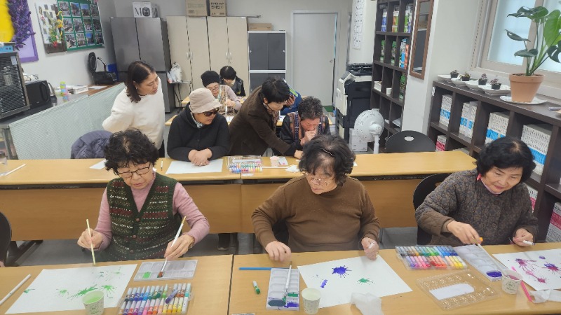 경남조은장애인평생학교 학생들은 1교시 미술심리치료 시간에 부정적인 감정을 표출해보는 시간을 보내보았습니다. 새하얀 도화지에 물감에 물을 흠뻑 적신 후 붓으로 물감을 떨어뜨려봅니다. 그런다음 빨대를 이용해 후후 불며 물감이 퍼지게 함으로써 내 안에 있던 스트레스와 힘듦, 그리고 부정적 감정을 밖으로 표출해내는 시간을 가져보았습니다. 모두들 각자 다르게 표현되는 것이 신기하고 어떤 마음을 가지고 부정적 감정을 표출하였는지 한명씩 이야기나누어보았습니다. 즐거운 시간이었습니다.
