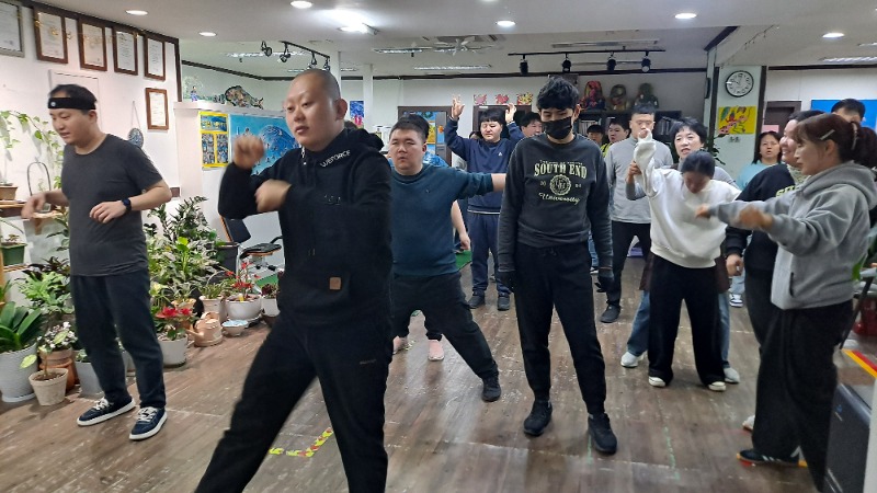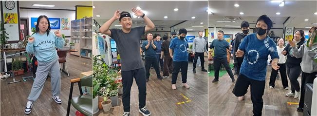 발달장애인들이 유산소운동을 함께 한다.