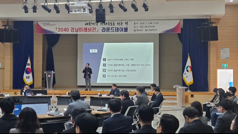 이날 라운드테이블에는 도 실·국장과 과장 등 간부공무원을 비롯해 부산진해경제자유구역청, 경남연구원 관계자 등 100여 명이 참석했다.