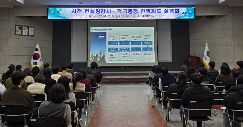 경상남도는 6일 산청군청에서 ‘적극행정 지원을 위한 사전 컨설팅감사․적극행정 면책제도’ 사전 설명회를 개최하고, 2026년 「현장 톡(Talk)! 사전 컨설팅감사*」를 본격 추진한다고 밝혔다.