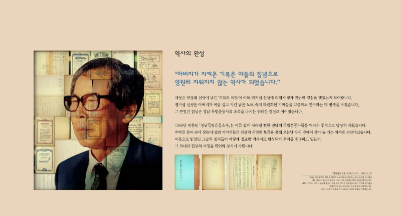 전시는 두 부자의 집념 어린 발자취를 따라간다. 누군가에게 반드시 전해야 할 진심으로 밀서를 수집했던 변상태 선생의 ‘기록의 시작’부터, 그 기록을 평생의 과업으로 삼아 『경남독립운동소사』를 완성한 변지섭 선생의 ‘역사의 완성’까지, 지워질 뻔한 지역 독립운동사가 오늘날까지 이어져 온 과정을 보여준다.