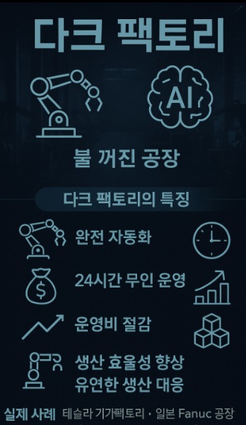 * 다크팩토리(Dark Factory) : 인간의 개입 없이도 완전 자동화로 운영되는 첨단 제조 공장