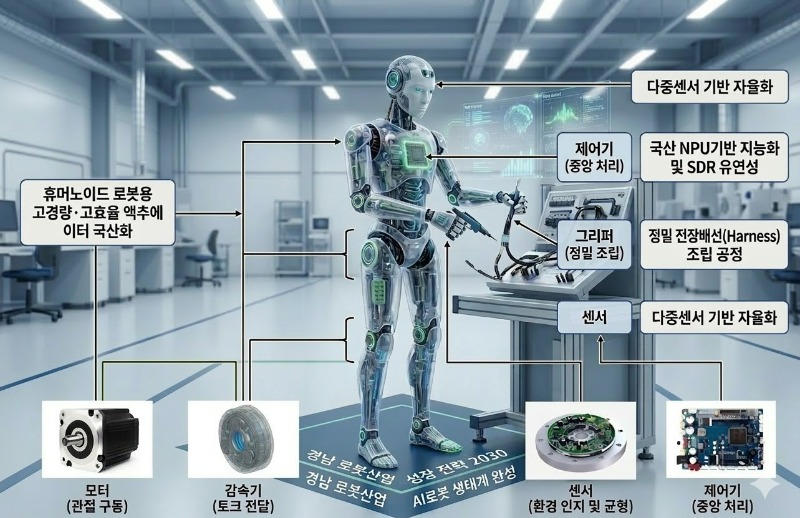 - 핵심부품(감속기, 모터 등) 국산화율 70% 목표로 AI로봇 생태계 강화