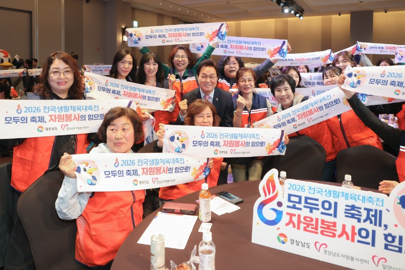 경상남도(도지사 박완수)는 8일 김해 롯데호텔앤리조트 가야홀에서 ‘2026 전국생활체육대축전’의 성공적인 개최를 지원할 자원봉사자 발대식을 열고 본격적인 활동의 시작을 알렸다.
