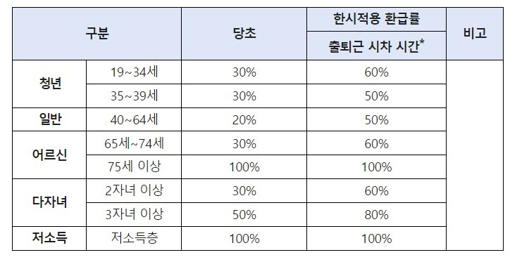- 시차 출퇴근 시간 환급률 최대 30%p 상향, 정액형 이용 문턱 완화