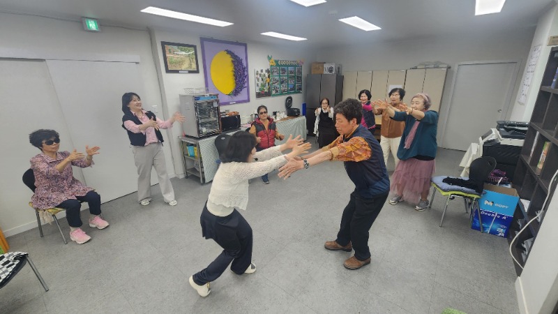 경남조은장애인평생학교 학생들은 실버댄스 시간에 상체운동과 허리자극운동을 해보며 손박수, 뇌건강체조를 해보았습니다. 아리랑 목동 노래를 시작으로 흥겨운 우리가락 음악에 맞춰 우울감을 해소해보며 신명나게 즐겨보았으며 꽃타령 노래에 맞춰 마라카스를 이용하여 흥미를 더해주었습니다. 마라카스의 찰찰찰 소리에 맞춰 열심히 춤추는 모습에 모두 스트레스를 날려버리듯 열심히 리듬에 몸을 맡기는 모습입니다. 쉬운 동작으로 몸을 움직이며 다양한 스트레칭을 해봄으로써 몸을 풀어보는 동작을 해보았습니다. 모두들 흥겹게 즐기는 웃음 가득한 시간이었습니다.