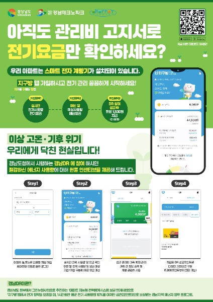 참여를 희망하는 도민은 경남DR 앱 서비스 운영업체인 헤리트의 ‘에첼’ 또는 에너넷의 ‘지구방’ 모바일 앱을 통해 간편하게 가입할 수 있다. 해당 앱에서는 실시간 전기사용량과 예상 요금 확인은 물론, 사용 패턴 분석과 절감 실적에 따른 인센티브 내역 등을 확인할 수 있다.