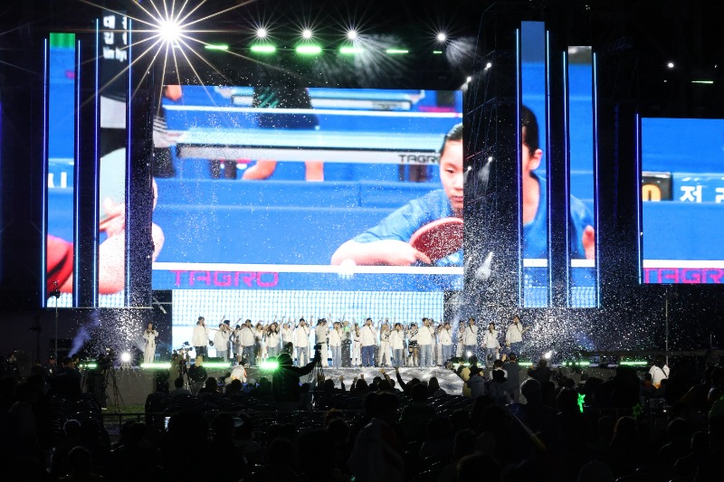 모든 출연진이 함께했던 주제공연 마지막 무대 ‘경남과 함께 다시 뛰는 대한민국, 또 하나의 우주로’에서는 ‘쾌지나 칭칭 나네’와 ‘아름다운 나라’를 경남도립합창공연단 고유의 웅장하고 환상적인 하모니로 풀어내며 개회식의 화려한 대미를 장식했다.