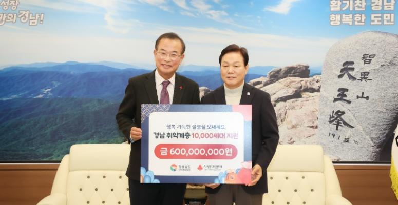 경남사회복지공동모금회, 경남도에 설 명절 위문금 6억 원 전달 - 12일, 도청서 위문금 전달식... 나눈문화 확산․사회공헌 방안 논의도- 도내 취약계층 1만 세대에 세대당 6만 원씩 지원- 박완수 지사 “소외 없이 모두가 따뜻한 설 명절 ...
