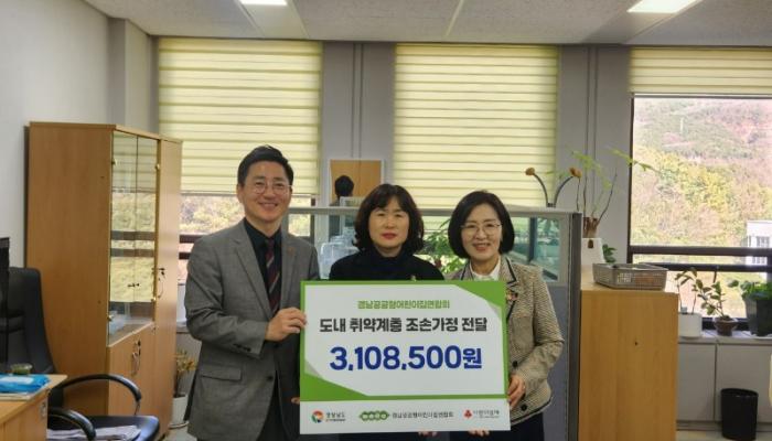 경남 공공형어린이집연합회, 조손가정에 따뜻한 나눔 - 아이들과 함께 모은 자선바자회 수익금 310만 원, 조손가정 아동 지원- 2017년부터 꾸준한 나눔 활동으로 지역사회에 선한 영향력 행사 경남도는 25일 경남공공형어린이집연합회(회장 위정숙)가 가정위탁 조손가정을 위해 성금 310만 8천500원을 기탁했다고 밝혔다. 이...