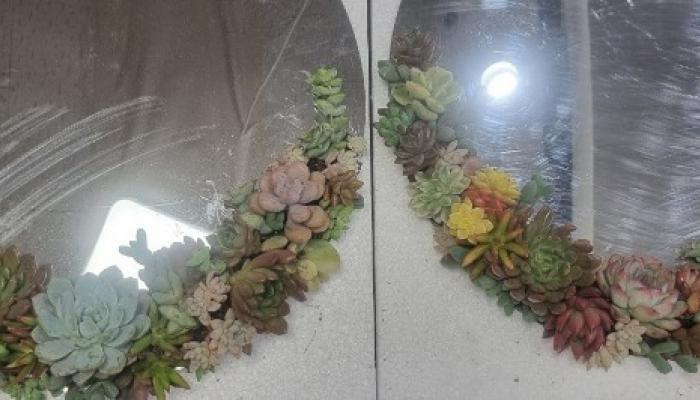 발달장애인들이 다육식물을 심으며 예쁜거울을 만든다. 넬손흙을 봉지에 담아 손으로 열심히 문지른후 다육식물과 함께 거울에 정성껏 붙이자 예쁜거울이 만들어 진다.발달장애인주간활동센터 뜨레봄은 다육식물심기 원예활동을 통해 아름다움을 만들어 간다. ....