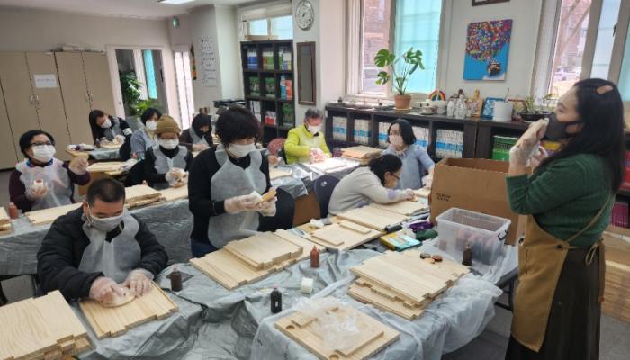 경남조은장애인평생학교 학생들은 목공예 시간에 원목박스 만들기(1차수업)을 진행해보았습니다. 먼저 소나무 원목으로 박스 구성품을 제작한 후 1차로 200방 사포를 이용하여 원목의 결대로 사포질을 해주었더니 한층 부드러워진 것을 확인할 수 있었습니다. 물티슈로 가볍게 원목을 닦아준 후 2차로 400방 사포를 이용하여 원목의 ...