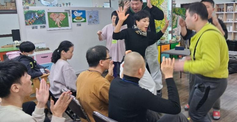 발달장애인의 종이학을 만들며 마술체험활동을 즐긴다.종이학을 손바닥에 올리며 짠하며 멋진 포즈도 취하자 발달장애인들은 한결같이 멋진 박수로 대답한다. 발달장애인주간활동센터 뜨레봄은 마술 체험활동을 통해 발달 장애인들의 힘차고 활기찬활동을 지원하고 있다....