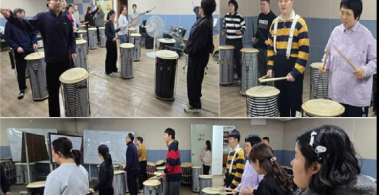 뜨레봄의 발달장애인들이 난타 배우기에 열심이다.강사의 연주구호에 맞추어 율동을 하며 힘차게 난타를 두드린다.발달장애인주간활동센터 뜨레봄은 난타배우기 프로그램을 통해 문화체험의 기회를 제공한다....