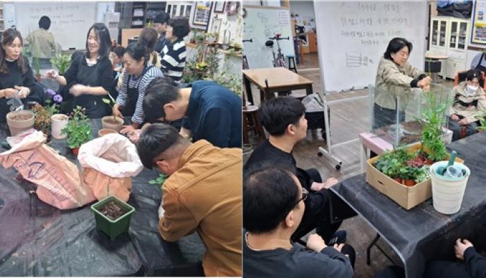 발달장애인들이 테라리움식물을 함께 심으며 원예체험활동을 했다.사각어항에 테라리움식물을 가지런지 놓고 이리 저리 자리를 옮겨가며 아름다움을 만들어 간다.발달장애인주간활동센터 뜨레봄은 원예체험활동을 통해 식물을 심고 가꾸는 즐거움과 기쁨을 함께 한다. ...