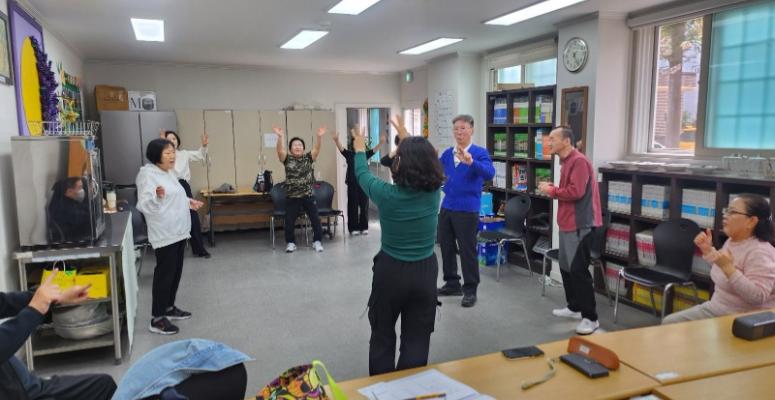 경남조은장애인평생학교 학생들은 실버댄스 시간에 손박수, 주먹박수, 어깨, 상하체운동, 하체 근력운동에 도움을 주는 동작들을 위주로 배워봤습니다. 먼저 "시계바늘"이란 곡으로 준비운동을 하며 전신 스트레칭을 하여 몸을 풀어주고 "보릿고개"란 곡으로 옆...