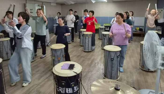 뜨레봄의 발달장애인들이 난타 연주에 여념이 없다.강사의 쿵쿵 짝찍 하는 소리에 맞추어 신나게 두드리며 한껏 신이나 있다.발달장애인주간활동센터 뜨레봄은 발달 장애인들이 난타 배우기 체험 활동을 지원하며 생활의 활력을 제공하고 있다. ...