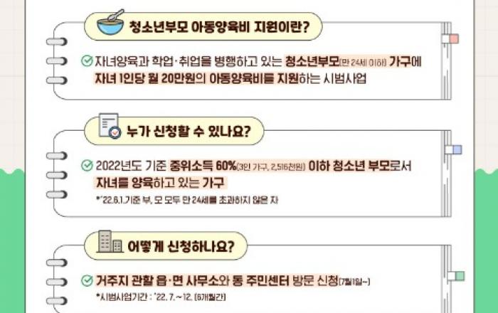 창원특례시, 청소년부모 아동양육비 지원 시범사업 실시만24세 이하의 청소년부모에게 자녀 1명당 20만원씩 지원창원특례시는 7월부터 12월까지 청소년부모의 양육부담 경감을 위해 만24세 미만의 청소년 부모 아동양육비 지원 시범사업을 실시한다고 28일 밝혔다.청소년부모 아