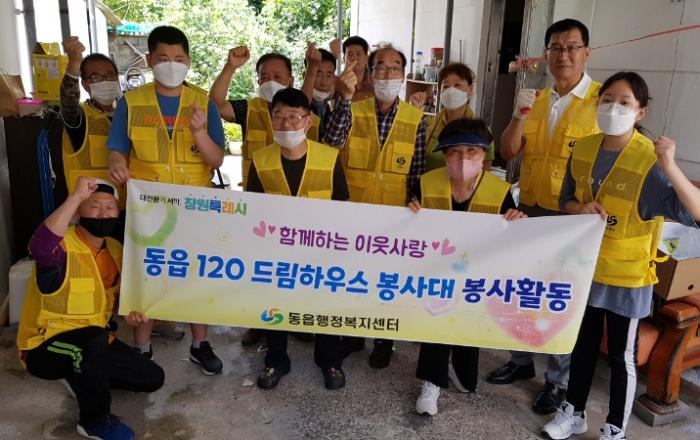 동읍 120드림하우스 봉사대, ‘사랑의 집 수리’ 활동 실시관내 취약계층 주거환경 개선활동 실시 창원시 의창구 동읍행정복지센터(읍장 강신오)는 2일 동읍 120드림하우스 봉사대(대장 김병찬)에서 관내 독거노인 세대를 방문하여 주거환경 개선을 위한 봉사활동을 실시하였다