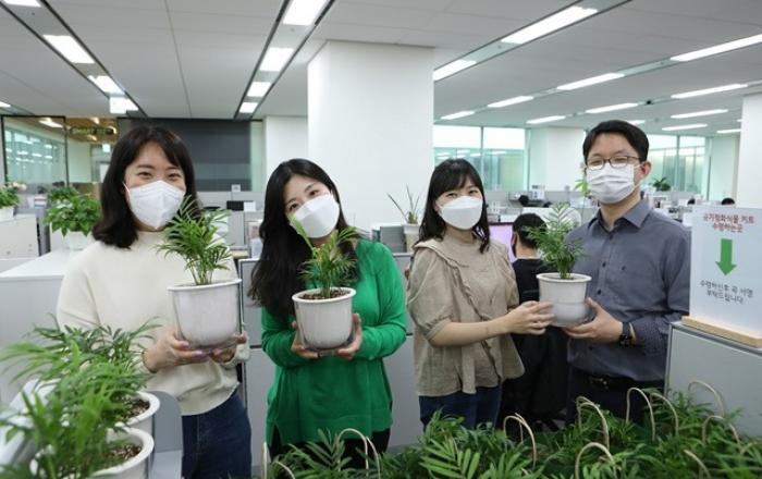 "클릭 몇 번으로 기부"… LG이노텍, 사회공헌 포털 오픈온라인 기부 프로그램 '이노드림펀딩' 도입사회공헌 활동에 대한 회사 지원 대폭 늘어청소년 진로 코칭 프로그램도 확대 운영▲ 최근 열린 비대면 봉사활동인 ‘공기정화 식물 기부’에 참여한 LG이노텍 직원들.LG이노텍