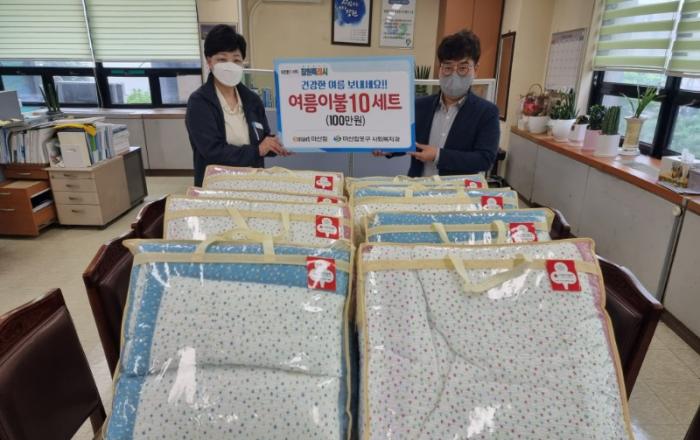 ㈜이마트 마산점 여름 이불 10채 기탁창원시 마산합포구(구청장 박명종)는 13일 ㈜이마트 마산점(점장 이상희)에서 “희망나눔 프로젝트” 업무협약의 일환으로 여름 이불 10채를 기탁 하였다고 밝혔다.이날 기탁된 이불은 100만원 상당의 여름이불과 요 세트 10채로 관내