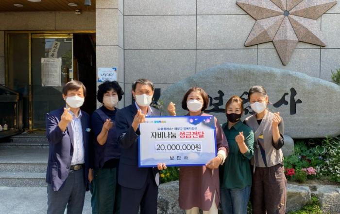 북면 보담사, 의창구에 이웃돕기 장학금 기탁부처님오신날을 맞이하여 장학금 기탁하여 자비나눔 실천창원시 의창구(구청장 권경만)는 16일 의창구 북면 보담사(주지 무심법성)에서 부처님오신날을 맞이하여 장학금 2,000만 원을 전달함에 따라 감사인사를 전하기 위해 보담사를