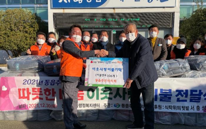 읍 주민자치회 이불 전달식 ‘동읍은 여전히 후끈후끈’- 식탁위의 텃밭 서충성 위원 후원, 동읍 주민자치회 이불 기탁 -창원시 의창구 동읍 주민자치회(회장 이종삼)는 12월 30일 강신오 동읍장, 김장하 시의원을 비롯한 주민자치위원들과 함께 동읍 행정복지센터에서 ‘202