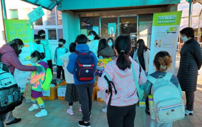 촉석 꿈동이들의 나눔으로 이웃 사랑 실천-촉석초, 교육복지 1인 1사랑 나눔데이 행사 진행-촉석초등학교(교장 김현순)는 11월 11일(목) 아침 등교 시간에 통학로 앞에서 ‘1인 1사랑 나눔데이’행사를 가졌다.진주시사회복지협의회 푸드뱅크와 연계한 이번 행사는 촉석초가