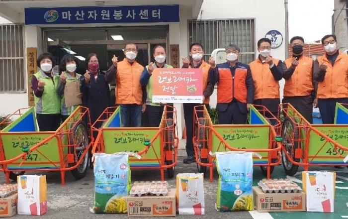 창원시, 한화에어로스페이스와 함께하는‘사랑의 리어카’전달창원시(시장 허성무)는 15일 한화에어로스페이스가 사랑의 리어카 4대를 제작, 전달했다고 밝혔다.이번 행사는 한화에어로스페이스 창원사업장 기술봉사팀의 재능기부로 제작되어 생계형 폐지 수집 어르신 4명에게 생필품(1