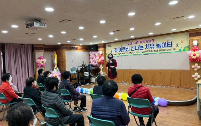 교방동, 꽃 어르신 신나는 치유놀이터 놀이터 교실 운영마산합포구 교방동(동장 이재광)에서는 11월 15일, 11월 22일 이틀간 교방동행정복지센터 및 노산민원센터에서 꽃 어르신 신나는 치유놀이터 교실을 운영한다고 밝혔다.교방동 주민자치회에서 추진한 이 사업은 관내 경로