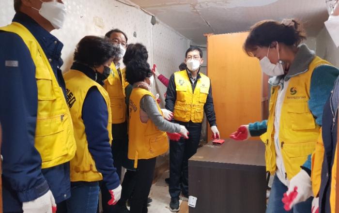 교방동 120생활민원봉사대, 독거세대 집수리 봉사활동 실시창원시 마산합포구 교방동(동장 이재광) 120생활민원봉사대는 11월 4일 관내 주거환경이 열악한 독거세대에 집수리 봉사활동을 펼쳤다.이 날 봉사는 곰팡이가 슬고 냄새가 나고 있는 독거세대의 안방 벽면을 도배하고,