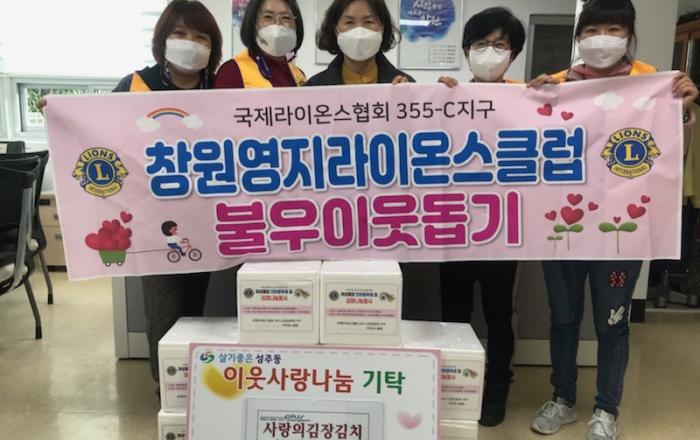 창원영지라이온스클럽, 사랑의 김장김치 기탁창원영지라이온스클럽(회장 조미숙)에서는 9일 회원들이 추워지는 날씨 속에 어려운 이웃을 위해 직접 김장김치를 담았으며, 김장김치 10box를 성주동(동장 최영숙)에 기탁하였다.조미숙 회장은 “점점 쌀쌀해지는 날씨 속에 회원들이