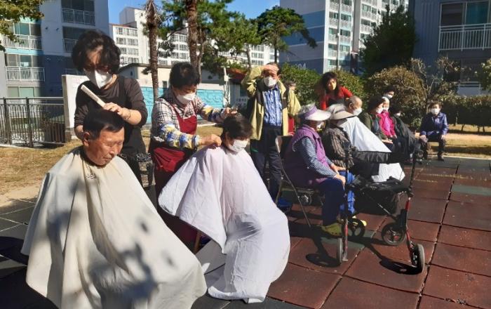 진해구 덕산동, 한마음미용봉사회 찾아가는 이·미용봉사 실시- 찾아가는 봉사로 사랑 나눔 실천 - 창원시 진해구 덕산동행정복지센터(동장 이지영)에서는 지난 19일 자은3주공아파트 정자 앞에서 관내 어르신 32분을 모시고 찾아가는 사랑의 이·미용봉사를 실시했다. 이번