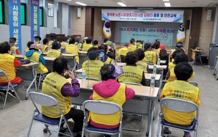 - 교통법규 및 안전사고 예방법 및 무단횡단의 위험 등 교육 -창원시 의창구 명곡동(동장 김성환)은 지난 21일에 의창구청 4층 대강당에서 노인일자리 및 사회활동참여자를 대상으로 교통안전 예방교육을 실시했다고 밝혔다.이번 교통안전 예방교육은 2021년 노인사회활동지원사