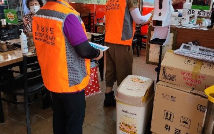 경남도와 안심을 전해요! 안전 봉사단과 함께하는 안심콜 홍보 - 경남도-안전모니터봉사단·안전보안관, 식당·카페 등 다중이용시설 안심콜 설치 이용 홍보 경상남도는 안전모니터 봉사단 경남연합회와 경상남도 안전보안관이 함께 지난 19일부터 23일까지 5일간 다중이용시설